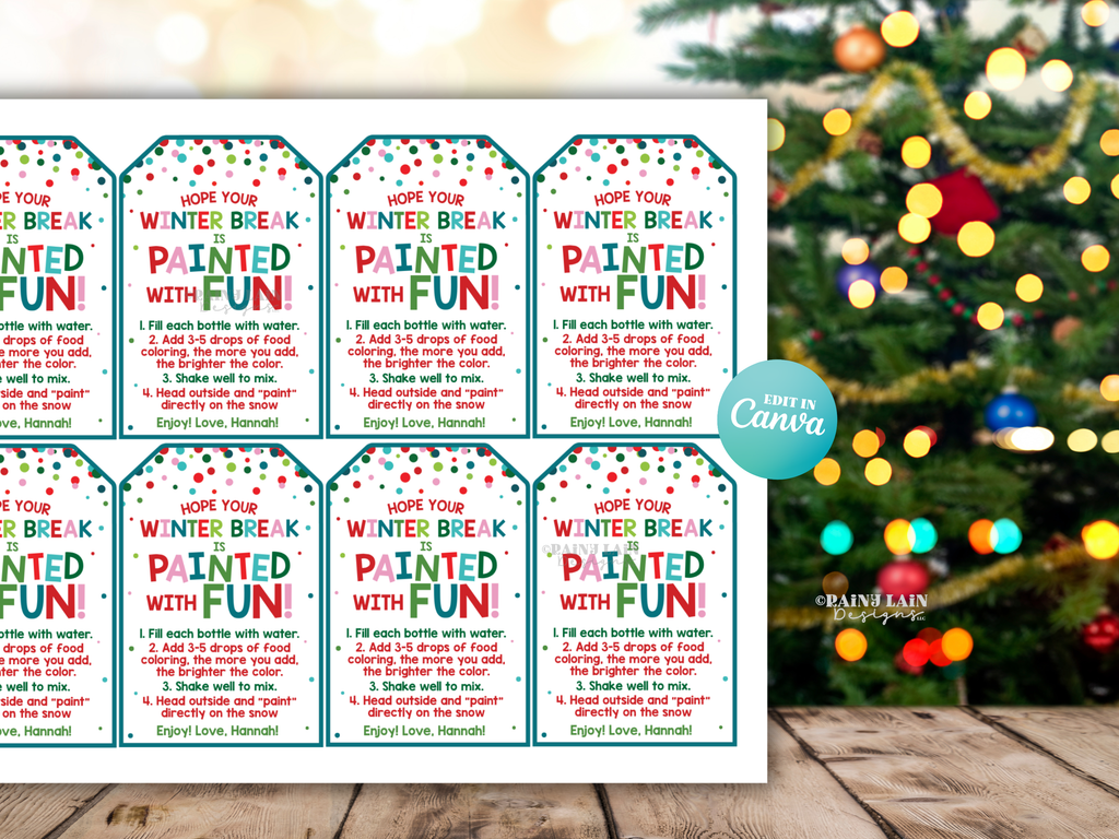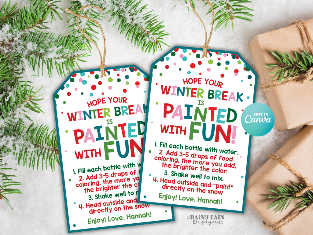 Snow Paint Gift Tag, Winter Break Painted With Fun, Editable in Canva