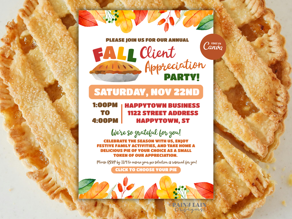 Fall Client Appreciation Party Flyer, Editable Pie Event Invitation