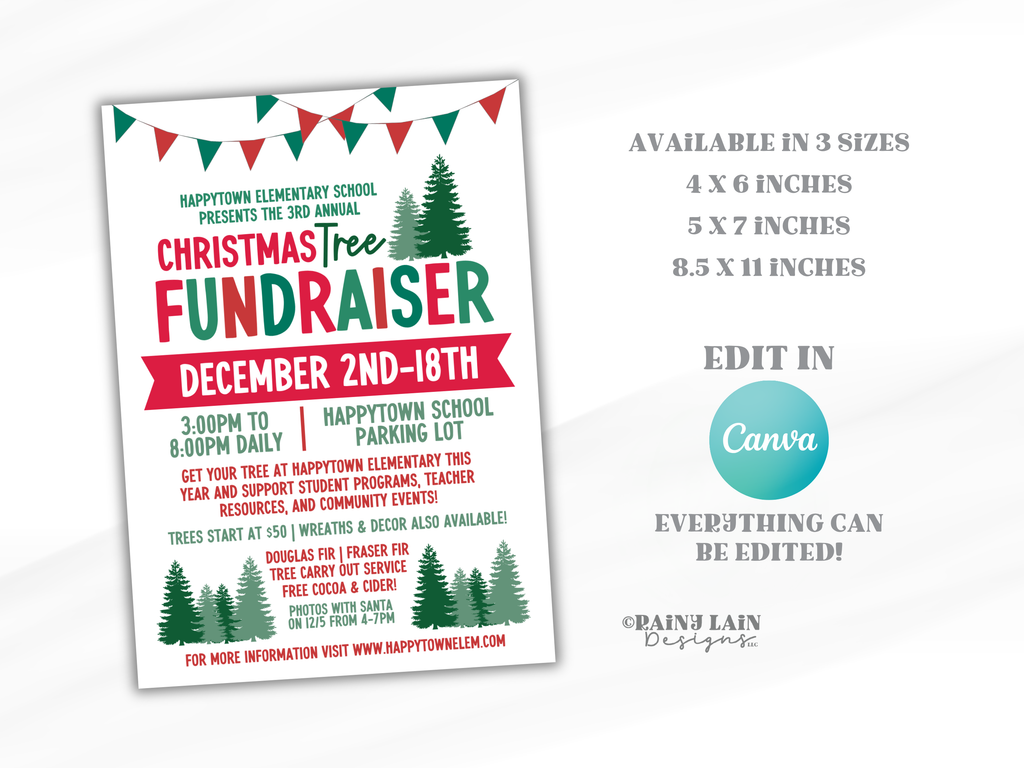 Christmas Tree Flyer, Holiday Fundraiser Sale, Canva Template, Editable Invitation