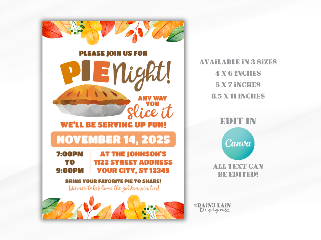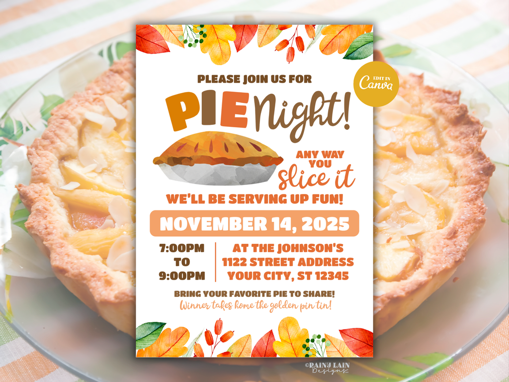 Pie Night Invitation, Pie Fundraiser Flyer, Pie and Wine, Pie and Cocktails Friendsgiving Thanksgiving Pie Making Contest Pie Eating Contest